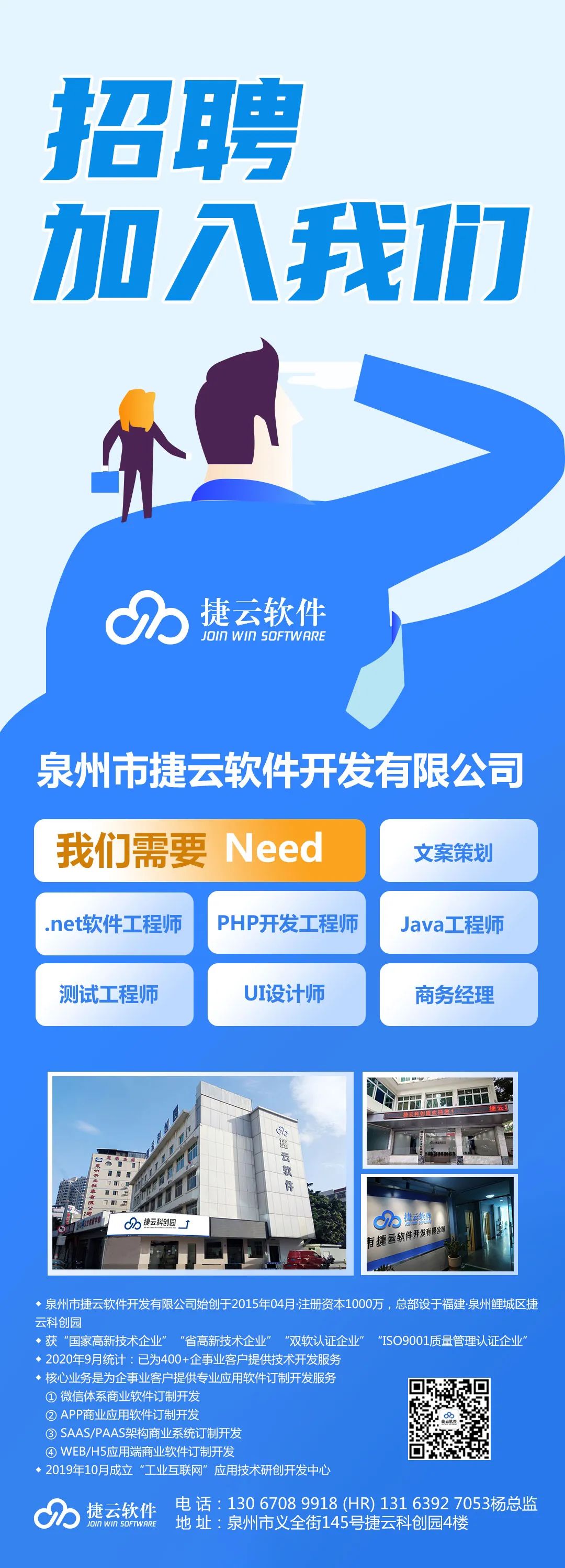 ◆ 泉州市捷云软件开发有限公司始创于2015年04月·注册资本1000万,总部设于福建·泉州鲤城区捷云科创园